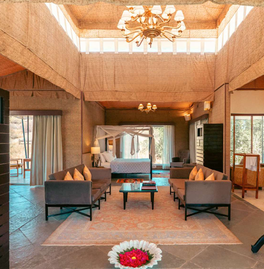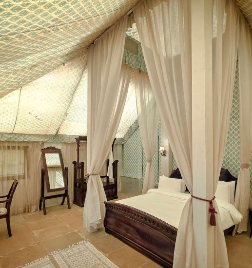 The Luxury Maharaja Tent is a symbol of royalty and elegance, inspired by the grand tents used in ancient history and often seen in Bollywood movies. Its unique multi-layered roof with a central canopy gives it a majestic look while allowing natural ventilation and weather protection.