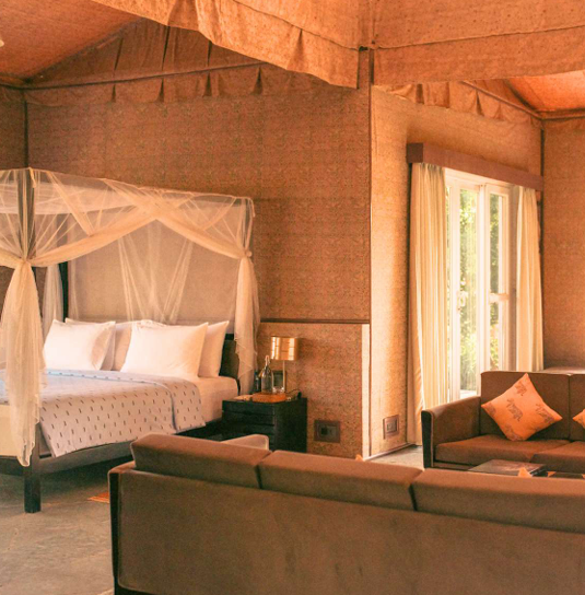 Available in different sizes and roof designs, this tent offers spacious interiors, making it perfect for luxury resorts, weddings, and heritage stays. Designed for glamping resorts and exclusive retreats, it promises comfort, style. Product is all weather proof, fire retardant, insulated & comes with powder coated M S Structure.